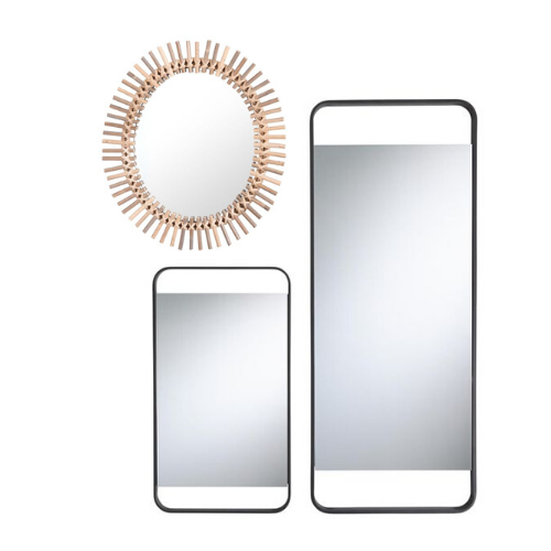 Another regular stop on my "retail rounds" is World Market; they have some unique pieces. If you don't live near a store, their website is excellent has an even more extensive selection! Most people think of them for their signature global look, but I've found some cool modern mirrors there too. When you think of mirrors, most people assume you mean for the wall, but don't forget about floor or leaning mirrors. They can really open up a room, try layering them with a chair and a plant!
